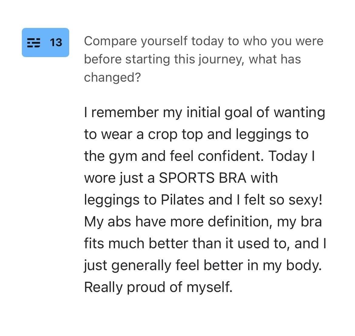 FAIL PROOF ACCOUNTABILITY SYSTEM:1-1 Direct Access to your coach via Bikini Body Blueprint App (message support Mon-Fri)Access to ACF Members-Only Accountability Pod on WhatsApp: Tribe of Like Minded PeopleWeekly Progress Assessments with a complete analysis of your progress and adjustment to your protocols as needed.Group Zoom Calls on various topics in training, mindset and nutrition + Q&A session.Access our Extensive Resource Library where you find resources on Mindset, Sleep, Stress, Training, Nutrition, Macros and all my Macro Friendly Recipes